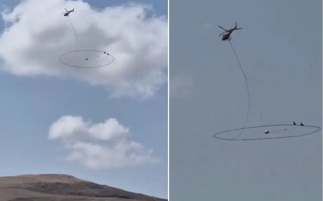 Pamjet e një helikopteri duke fluturuar me një strukturë të madhe rrethore në zonën e Gümüşhane në Turqi, shkaktuan kuriozitet dhe thashetheme mes banorëve të zonës, të cilët dyshuan se bëhej fjalë për një “gjueti thesari”.