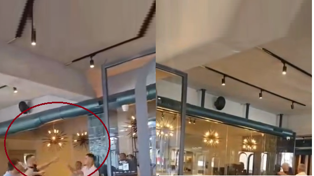 Rrahje mes dy grupeve në restorant, gjuhen me gota qelqi ndërmjet veti..VIDEO